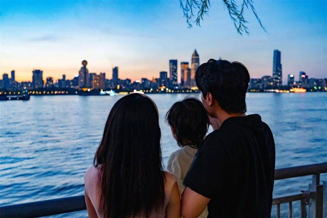 如今,汉口江滩焕发新生。高楼林立,灯火辉煌,江水倒映城市光影。夜幕下,一家三口的背影静静伫立在武昌江滩,望向远处汉口的繁华,他们的身影仿佛穿越时空,与曾经的焦土形成呼应。