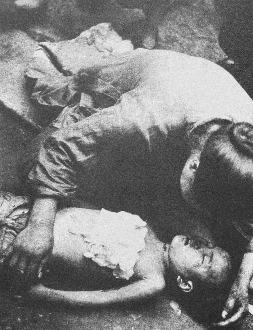 被日机炸死的武汉儿童,母亲在旁痛哭。(湖北日报全媒记者 何宇欣 翻拍于八路军武汉办事处旧址纪念馆)